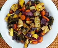 The vegetables for this dish can vary with the season, whatever you most like, and what is fresh in the market. The main thing is to make sure that each is roasted to the perfect point of doneness, which will take a few separate pans.