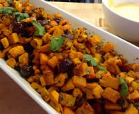 Toss the squash with the sauce as soon as it comes from the oven. Serve hot, warm or at room temperature as you wish. (Serves 12)