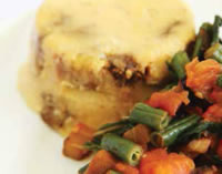 To serve, place each serving dish on top of the souffle bowls and tip over. Add the stir-fried vegetables onto the side of the polenta cakes. Serves 3-4.