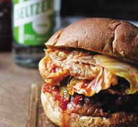 a nice saucy patty, but watch out for the hot oil. Repeat with the remaining burgers, adding the remaining oil after the first batch. Toast the burger buns while the burger patties are cooking. Serve each burger in a toasted bun with lots of kimchi on top.