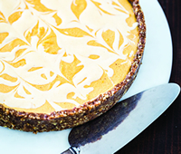 4. Drizzle the reserved cashew cream over the top. Carefully drag a toothpick or skewer through the coconut cream and pumpkin mixtures, making a marbleized pattern. Cover the pan, return to the freezer, and freeze for 2 hours. Transfer to the refrigerator until ready to serve. Remove the sides of the springform pan, slice, and serve. Leftovers will keep in the fridge for 3 to 4 days.