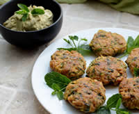 Zucchini & Tofu Fritters w/ Avocado-Cashew-Lime Dip